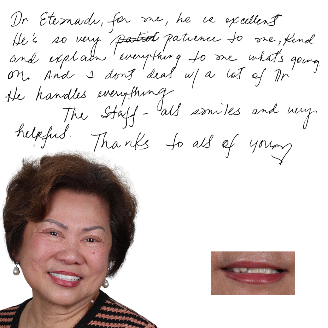 These are real patients who once hid their smiles out of shame or discomfort. With Same Day Implants by Dr. Naeem Etemadi, they regained not just their teeth—but their confidence and quality of life.